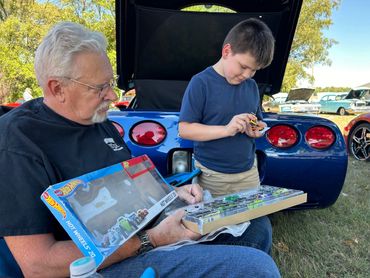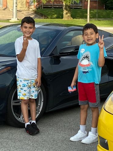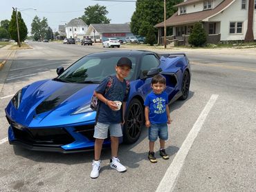 A chance to sit in a corvette is always met with smiles.