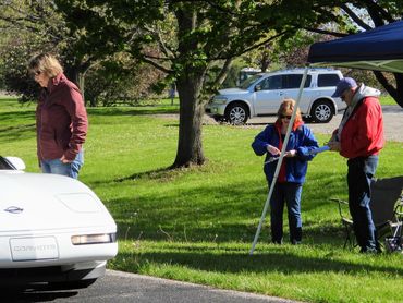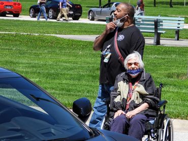 Over $11,000 and several carts of supplies were donated to the Indiana Veteran's Home. We had two successful raffles, funds from the patriotic quilt were donated to IVH and funds from the framed stained glass panel benefited Mary T. Klinker, a local veteran's group. New and previously attending clubs joined in, drivers from the visiting corvette clubs were given a commemorative 10th anniversary hat pin. A parking lot lunch was enjoyed, friendships renewed over mutual interests of corvettes and patriotism. Residents of the Veteran's Home celebrated with a cookout. Then corvettes caravanned and reassembled at the IVH.